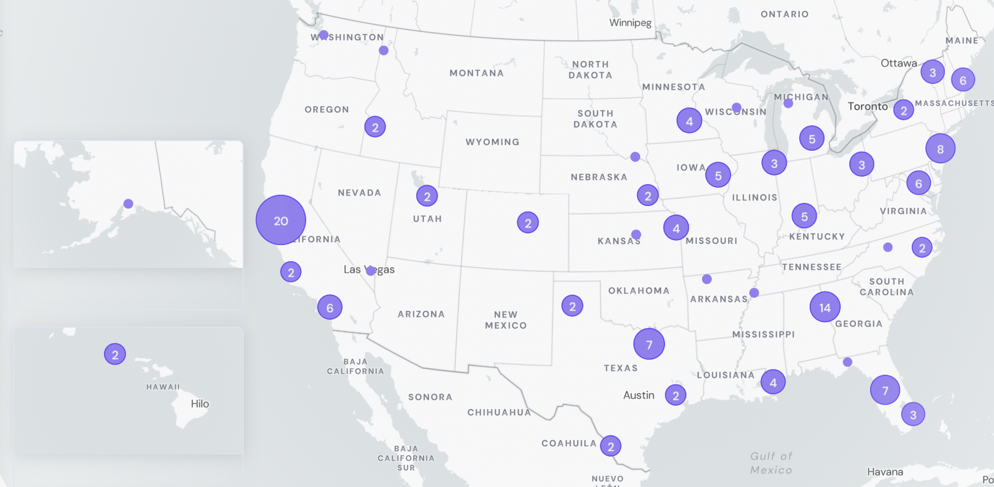 Since monitoring began, 43 sites across 21 states (AK, CA, CO, CT, FL, GA, IA, ID, IL, IN, KS, MD, MI, MN, NE, NJ, NV, NY, TX, UT and VT) have had at least 1 positive detection of MeV in wastewater samples collected. Below is a map of sites with MeV detections in wastewater since prospective monitoring began.