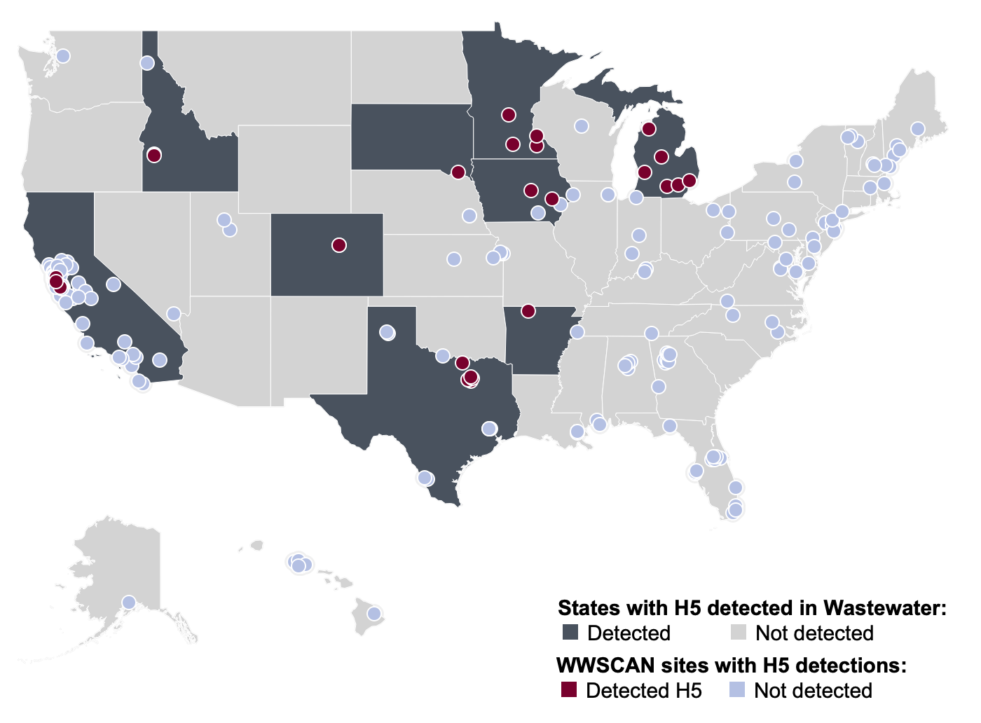 H5 Marker in Influenza A (IAV) Since we started monitoring for the H5 marker in influenza A, 26 WastewaterSCAN sites have seen positive detections.