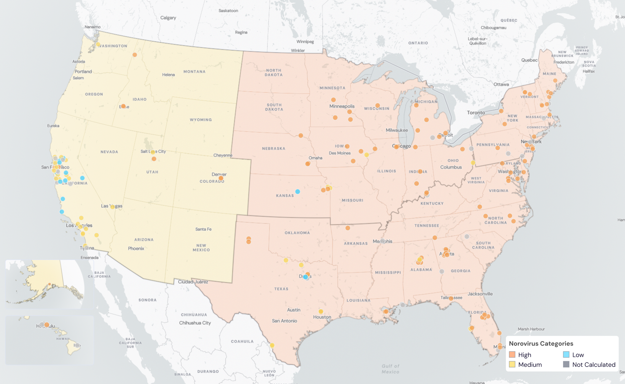 Below are the current Norovirus wastewater categories for ALL WWSCAN sites: