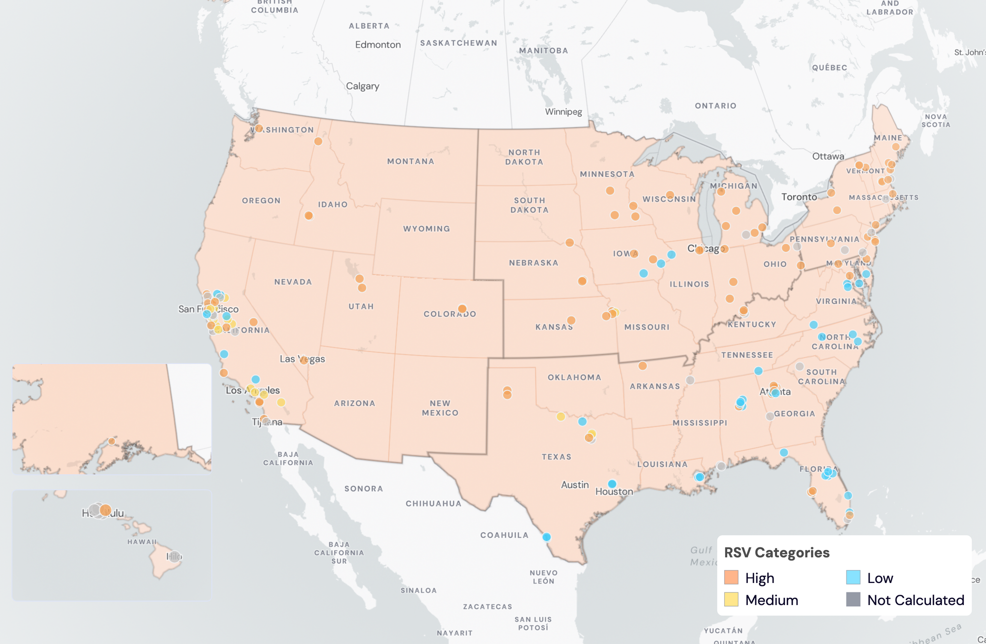 Below are the current RSV wastewater categories for all WWSCAN sites, with 68% of sites showing wastewater onset for RSV: