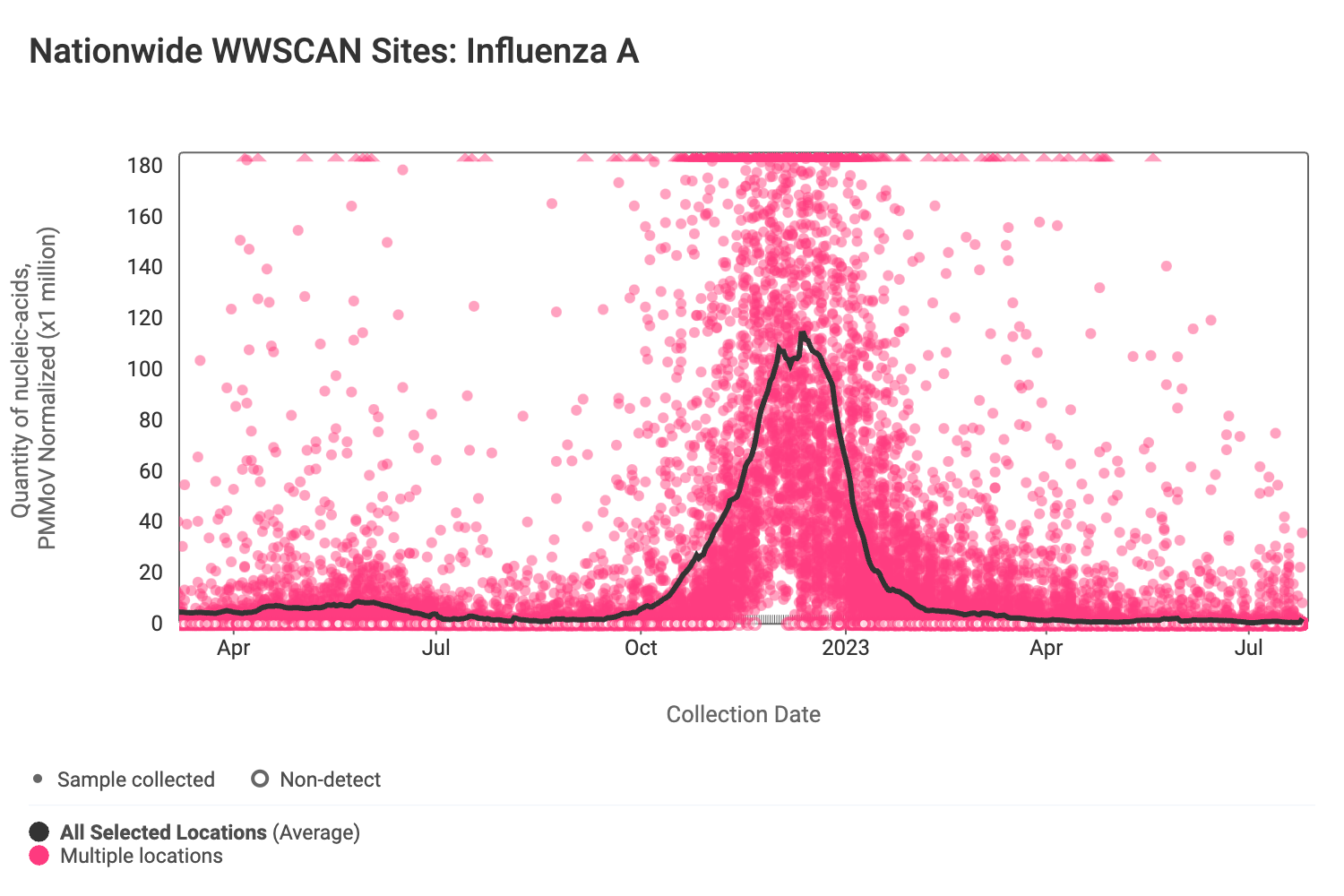 We have a new peer reviewed publication using WWSCAN data from 8 Bay Area sites: More than a Tripledemic: Influenza A Virus, Respiratory Syncytial Virus, SARS-CoV-2, and Human Metapneumovirus in Wastewater during Winter 2022 - 2023. Here is a link to the paper which is open access: link.