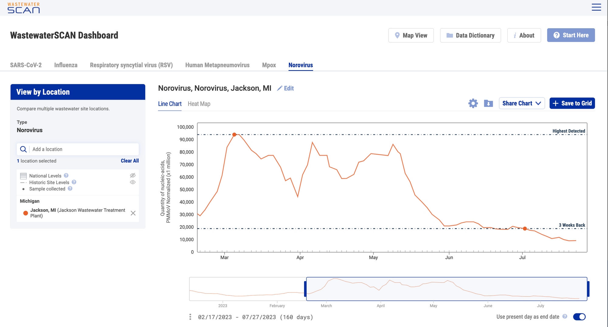 We've added Site grid PDF downloads, National levels & Historic site levels to help better provide context for where current wastewater levels are compared to the past