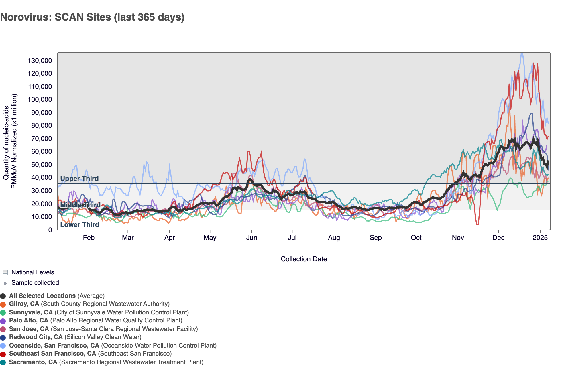 - Gilroy, Oceanside SF, Palo Alto, Sacramento, Southeast SF and SVCW are in the HIGH Wastewater Category for Norovirus