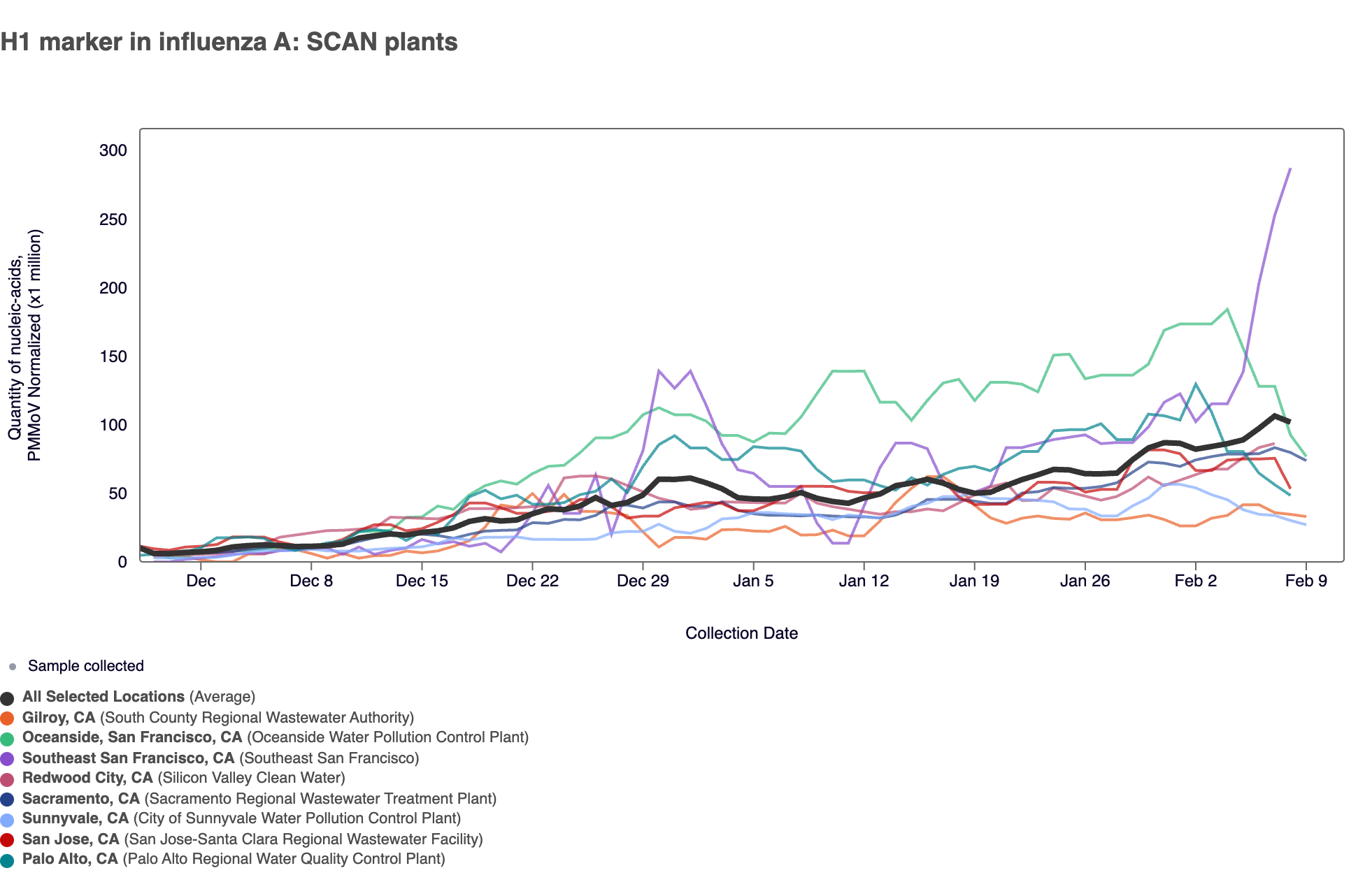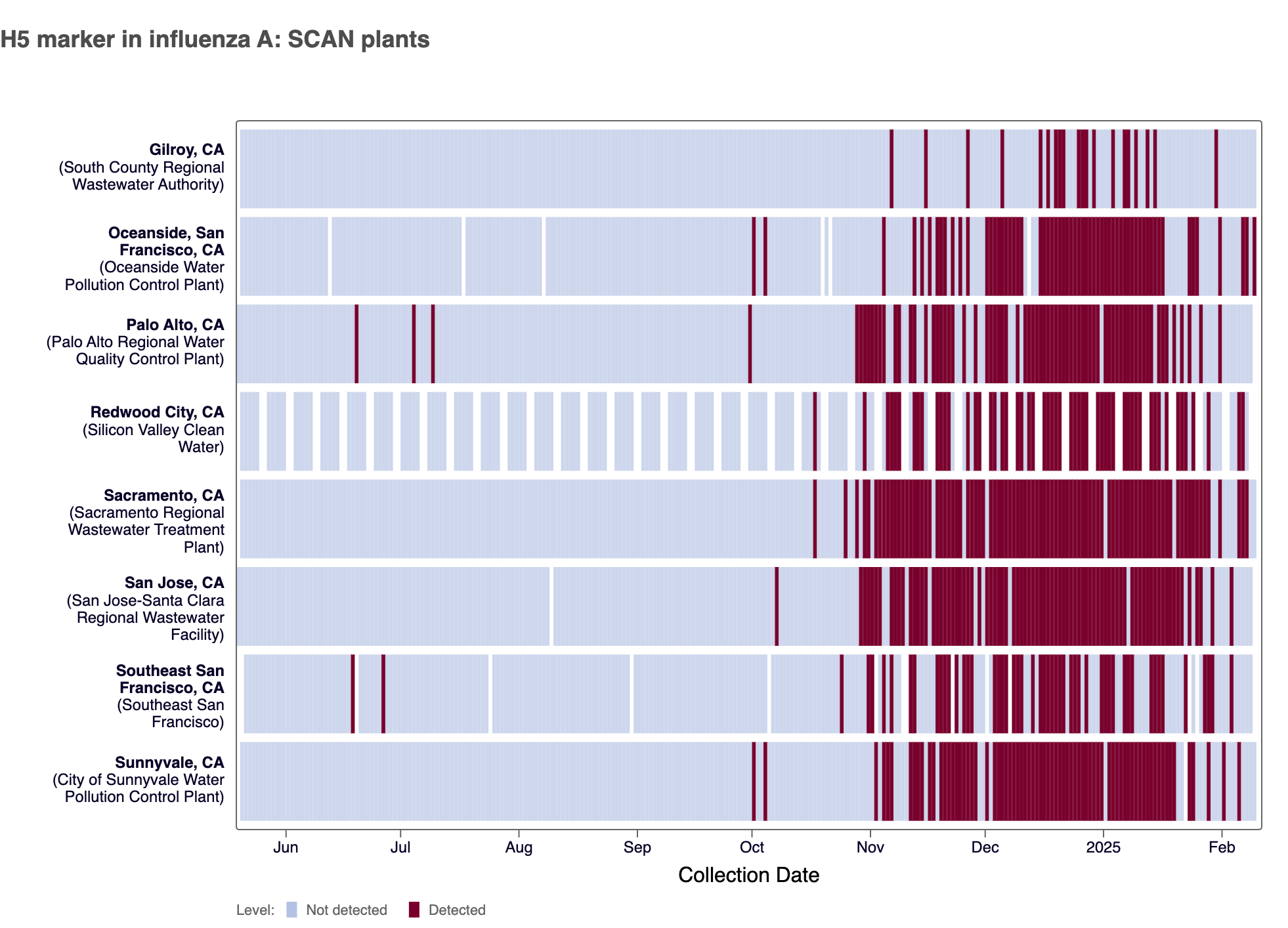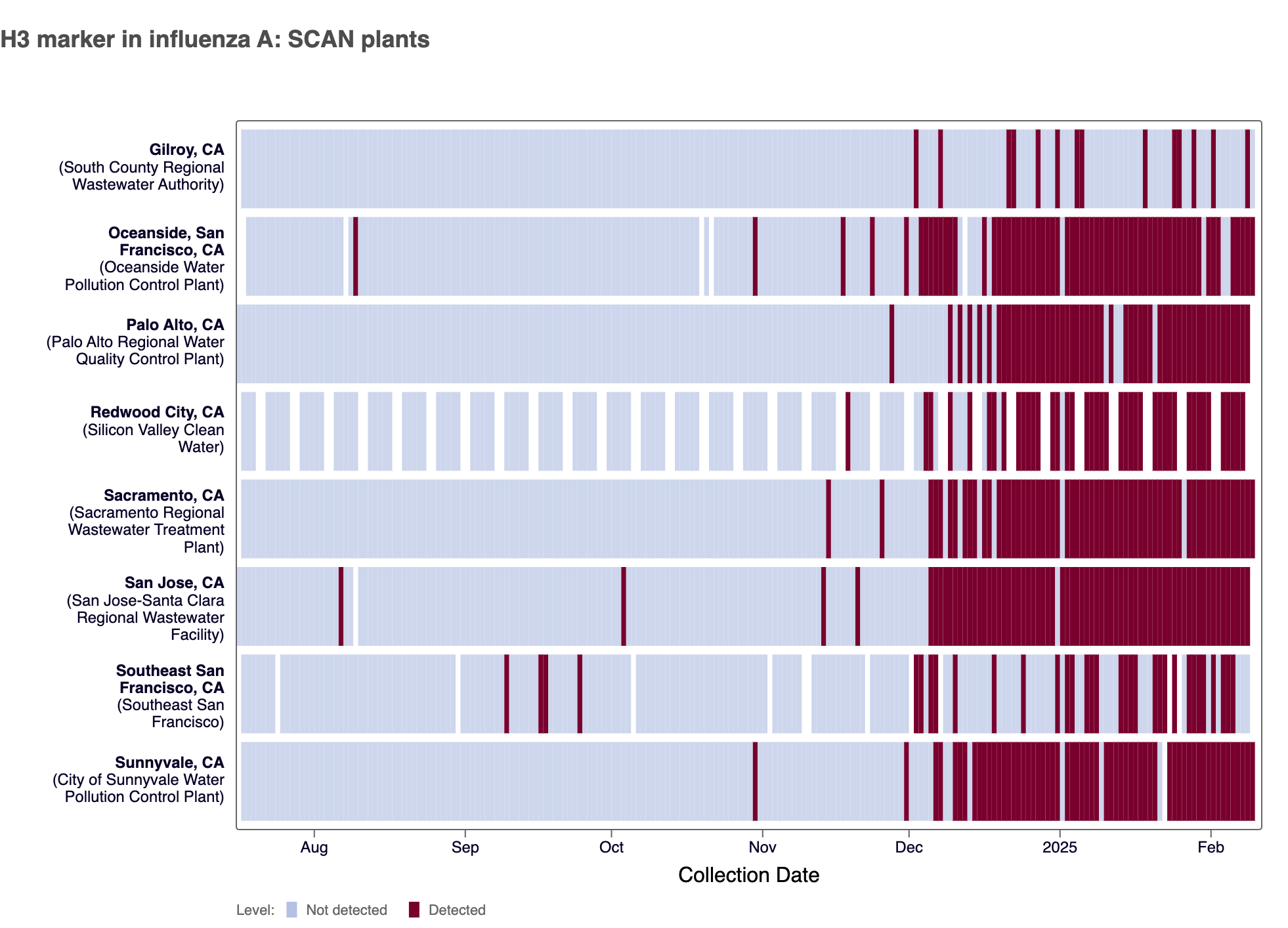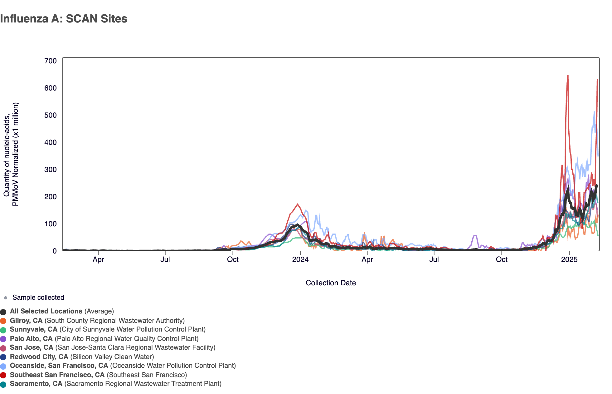 - Gilroy, Oceanside SF, Palo Alto, Sacramento, San Jose, Southeast SF, Sunnyvale, and SVCW are in the HIGH Wastewater Category for Influenza A