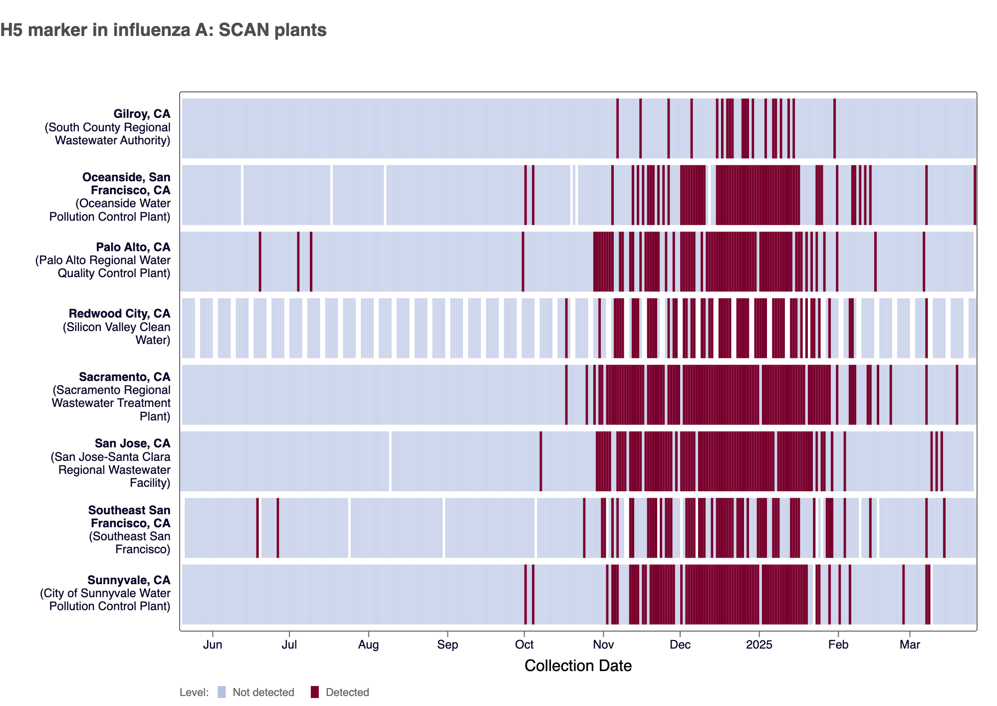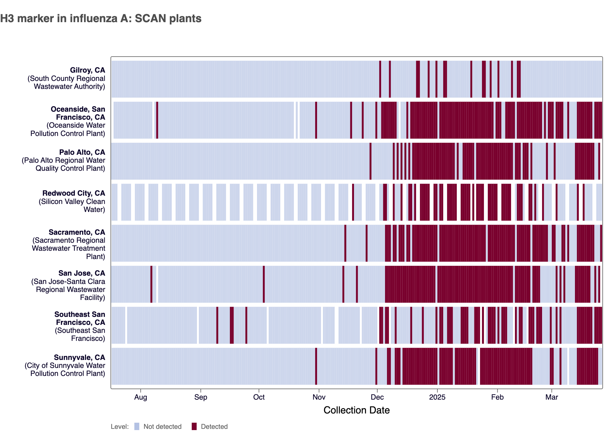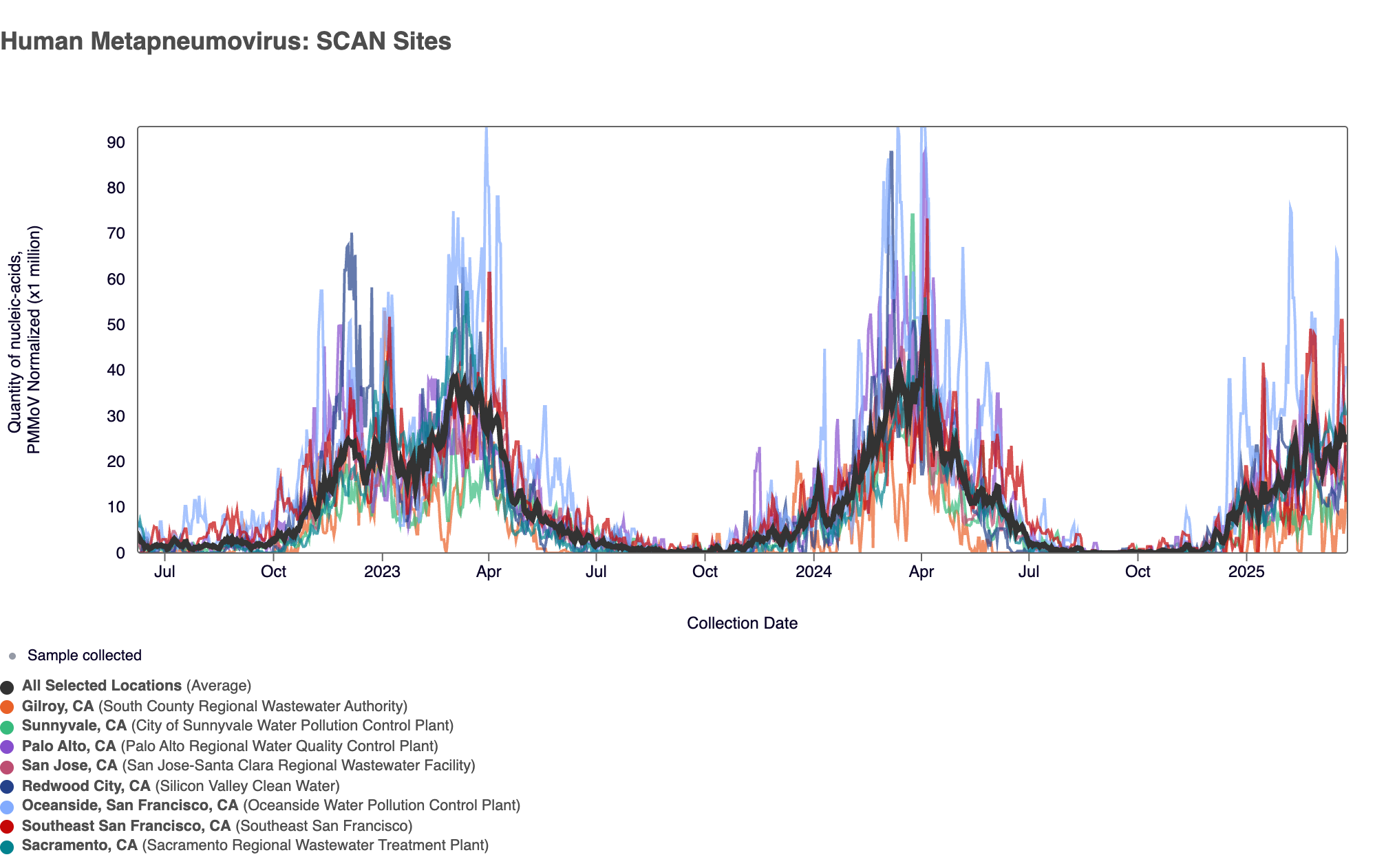 - Oceanside SF, Palo Alto, Sacramento, San Jose, Southeast SF, SVCW, and Sunnyvale are in seasonal onset and in the HIGH Wastewater Category for HMPV