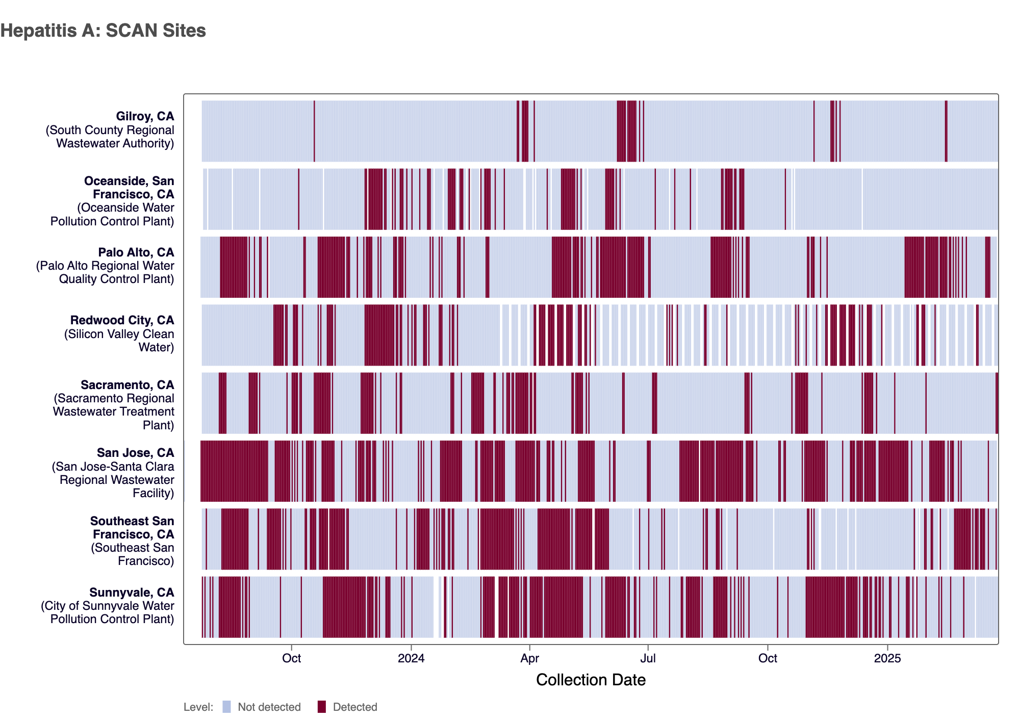 - Gilroy, Oceanside SF, Palo Alto, Sacramento, San Jose, Southeast SF, SVCW, and Sunnyvale are in the LOW Wastewater Category for Hepatitis A