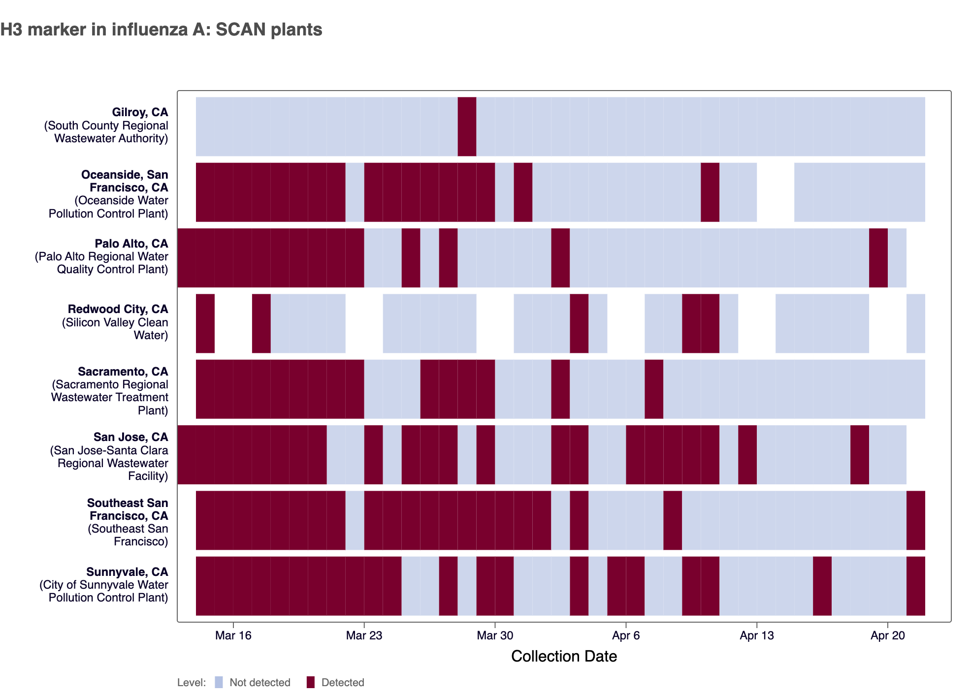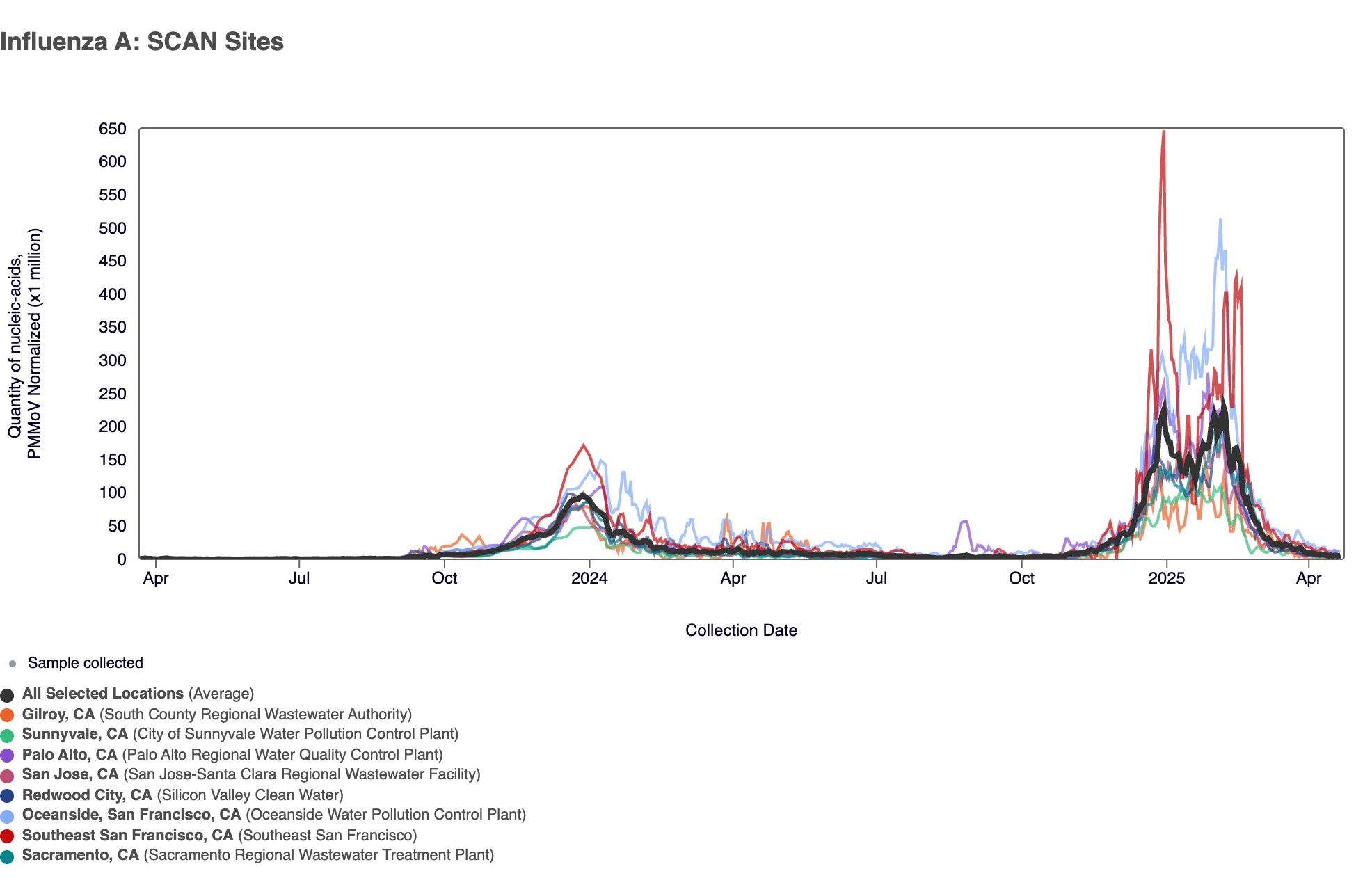 - Palo Alto, Oceanside SF, Sacramento, San Jose, Southeast SF, SVCW, and Sunnyvale are in the MEDIUM Wastewater Category for Influenza A