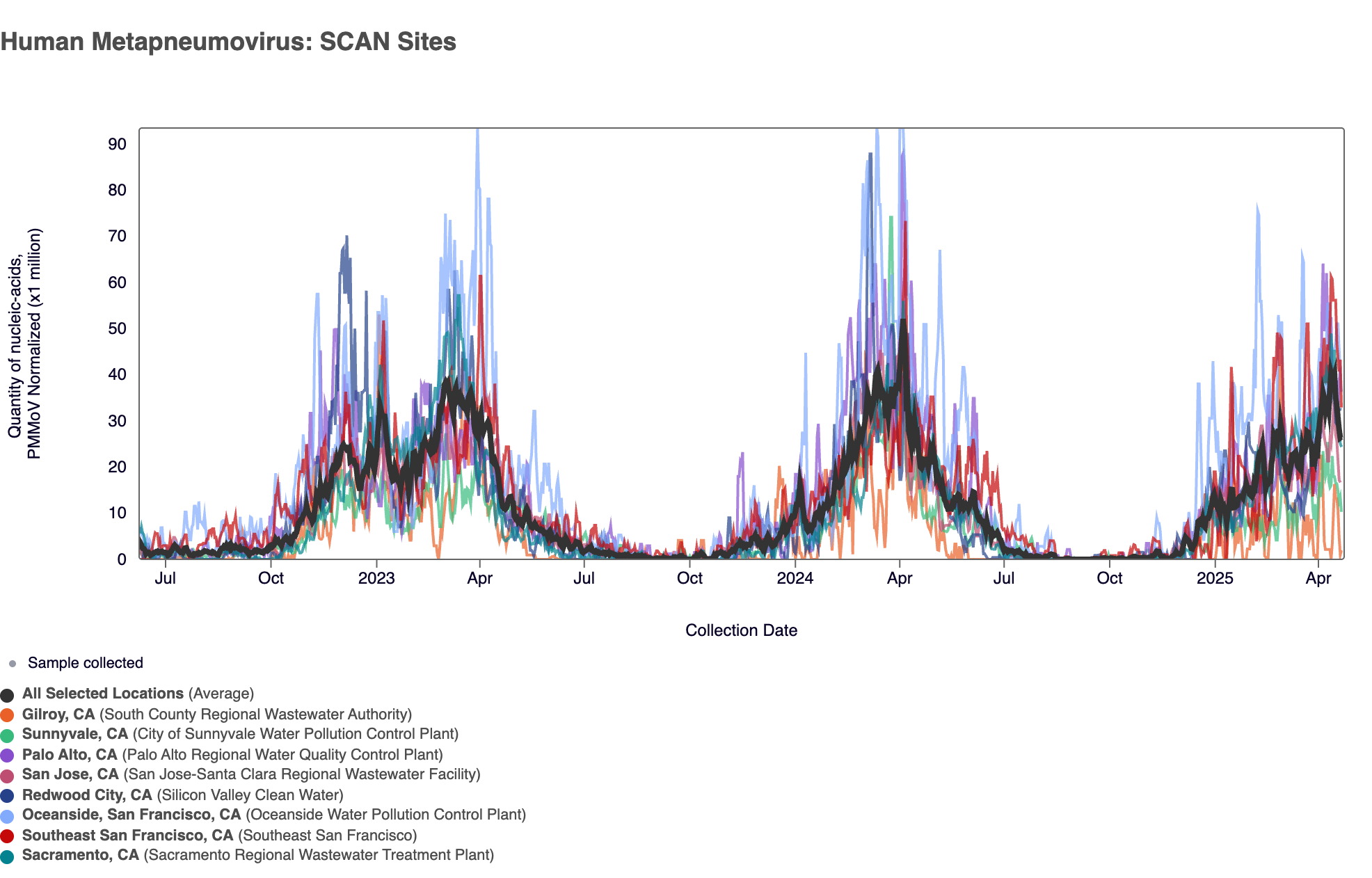 - Oceanside SF, Palo Alto, Sacramento, San Jose, Southeast SF, SVCW, and Sunnyvale are in seasonal onset and in the HIGH Wastewater Category for HMPV
