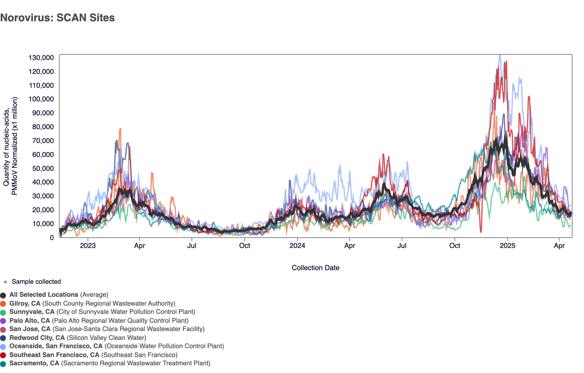 - Gilroy, Palo Alto, San Jose, SVCW, and Sunnyvale are in the LOW Wastewater Category for Norovirus