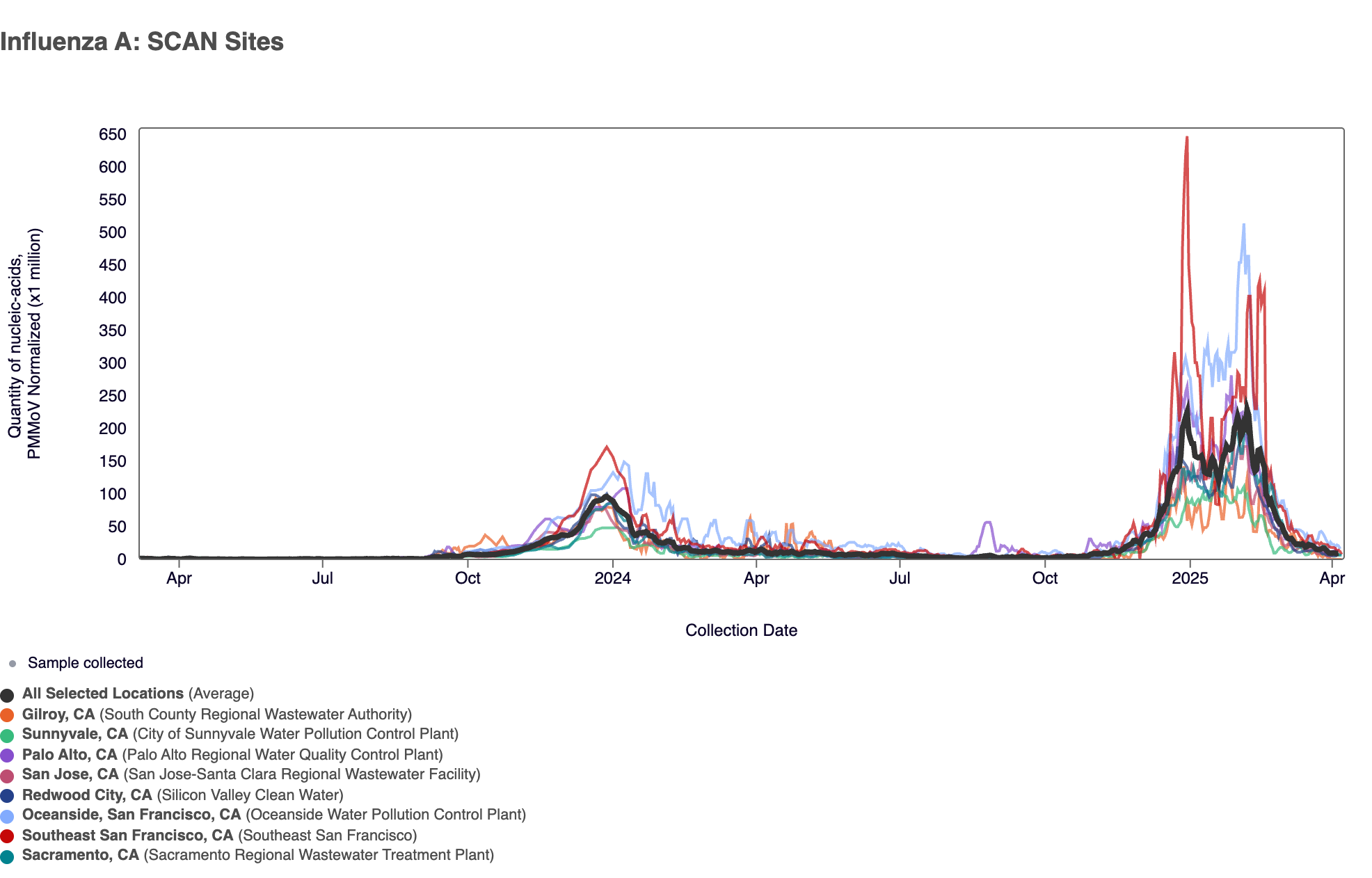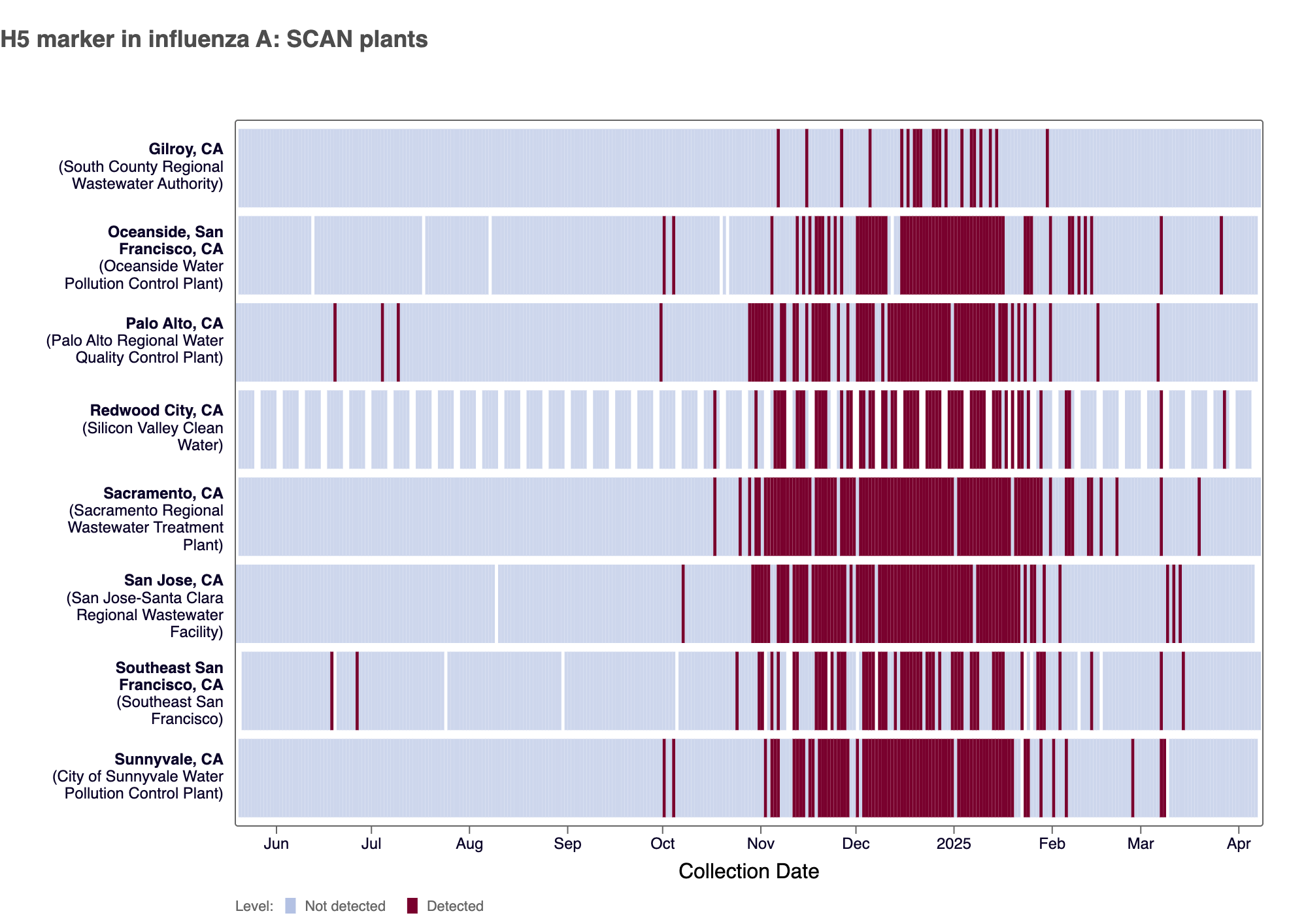 - Palo Alto, Oceanside SF, Sacramento, San Jose, Southeast SF, SVCW, and Sunnyvale are in the MEDIUM Wastewater Category for Influenza A
