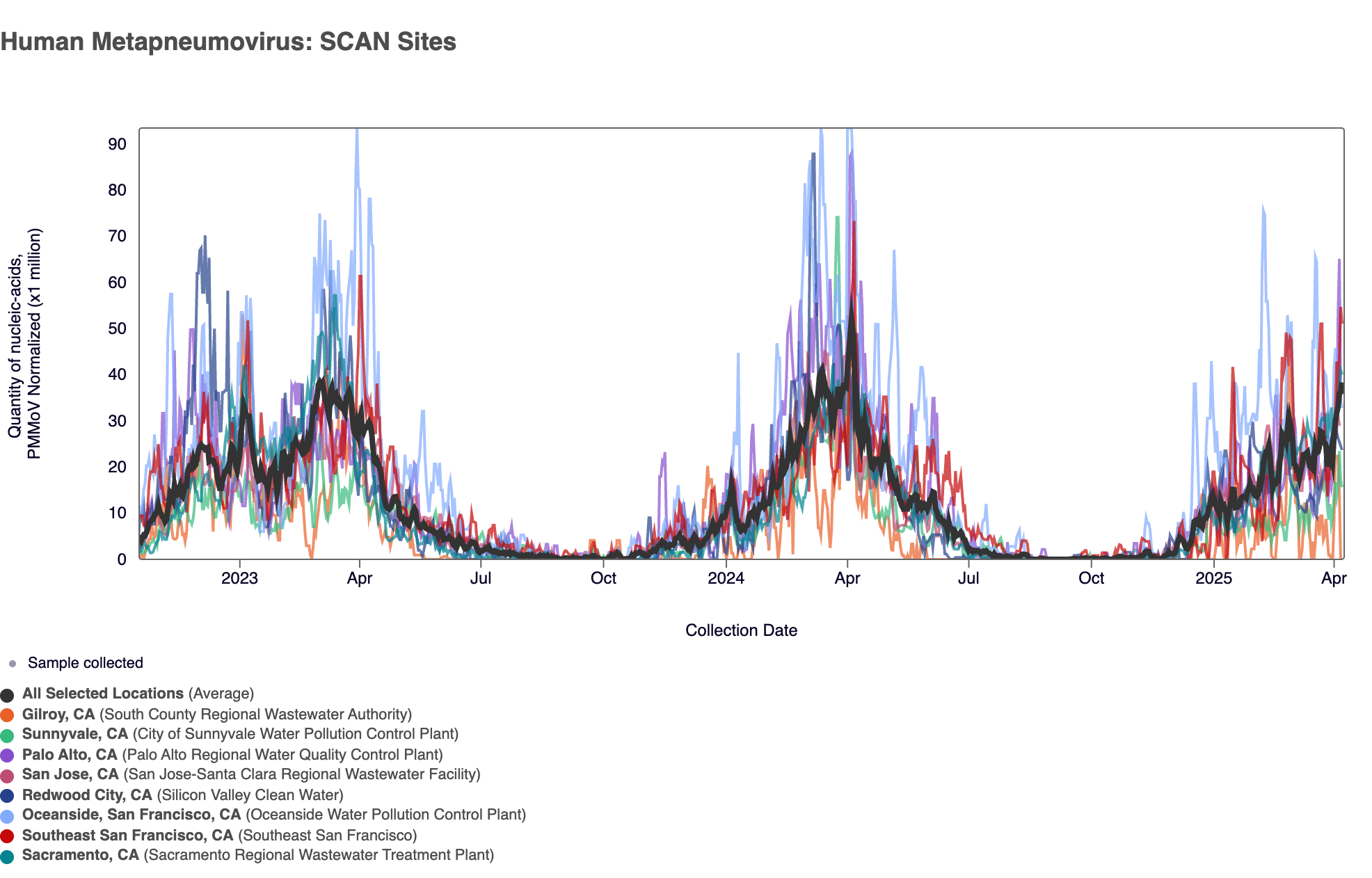 - Oceanside SF, Palo Alto, Sacramento, San Jose, Southeast SF, SVCW, and Sunnyvale are in seasonal onset and in the HIGH Wastewater Category for HMPV