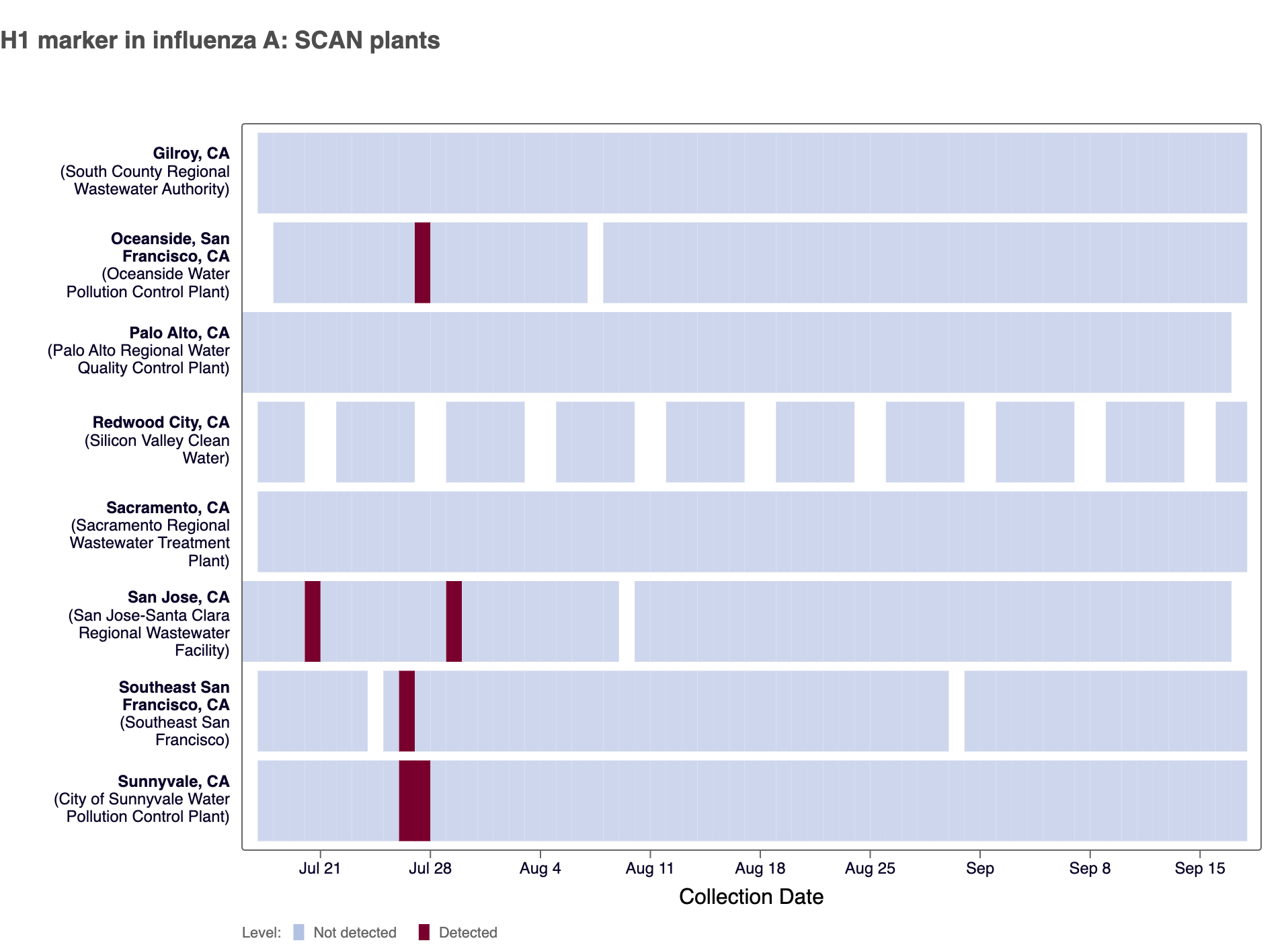 4 sites in the SCAN network (Oceanside SF, San Jose, Southeast SF, and Sunnyvale) have tested positive for the H1 marker in influenza A since we began testing for the marker prospectively in mid July 2024.