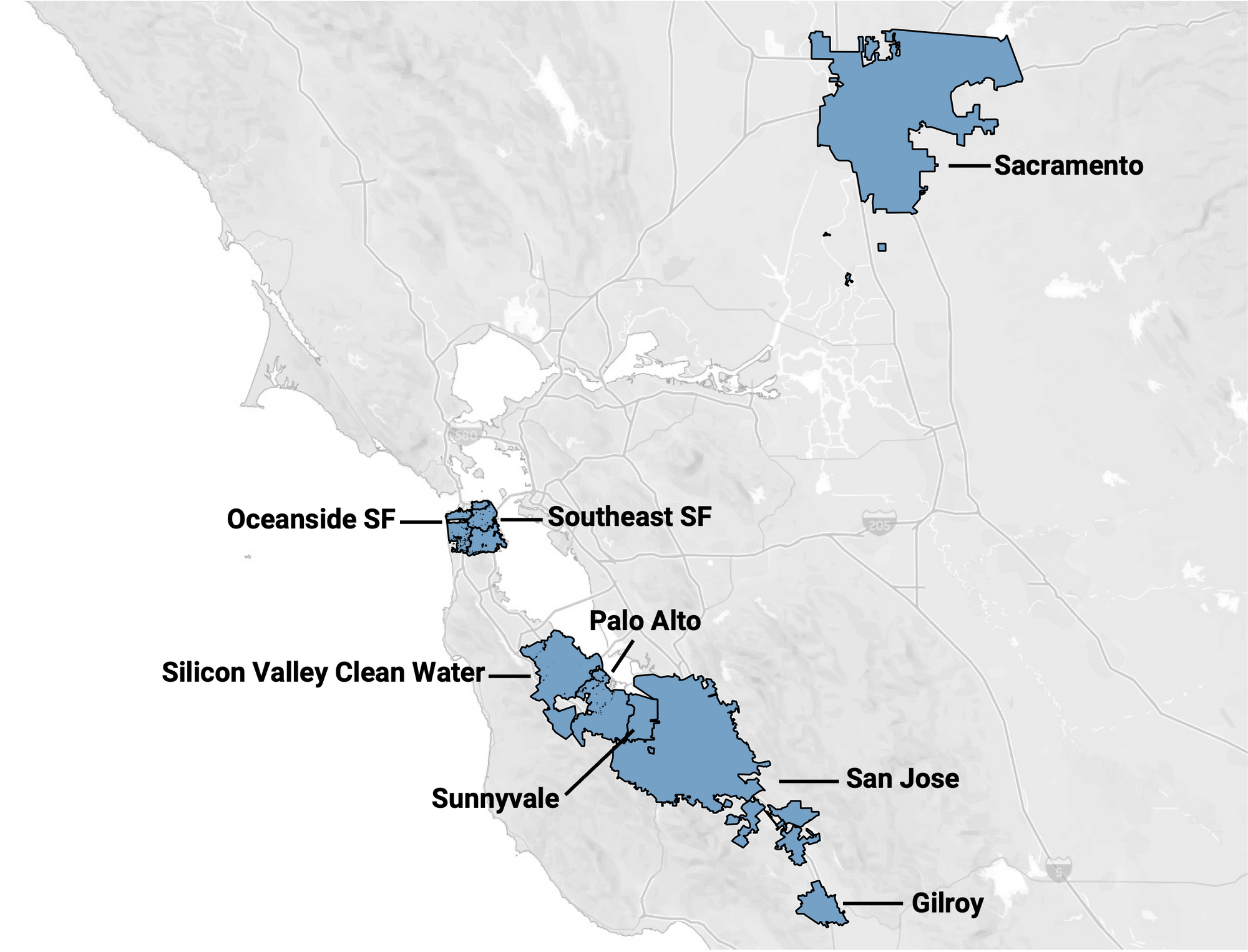 Gilroy, SVCW, and Sunnyvale are in the LOW Wastewater CategoryPalo Alto, Sacramento, San Jose, Oceanside SF and Southeast SF are in the MEDIUM Wastewater Category