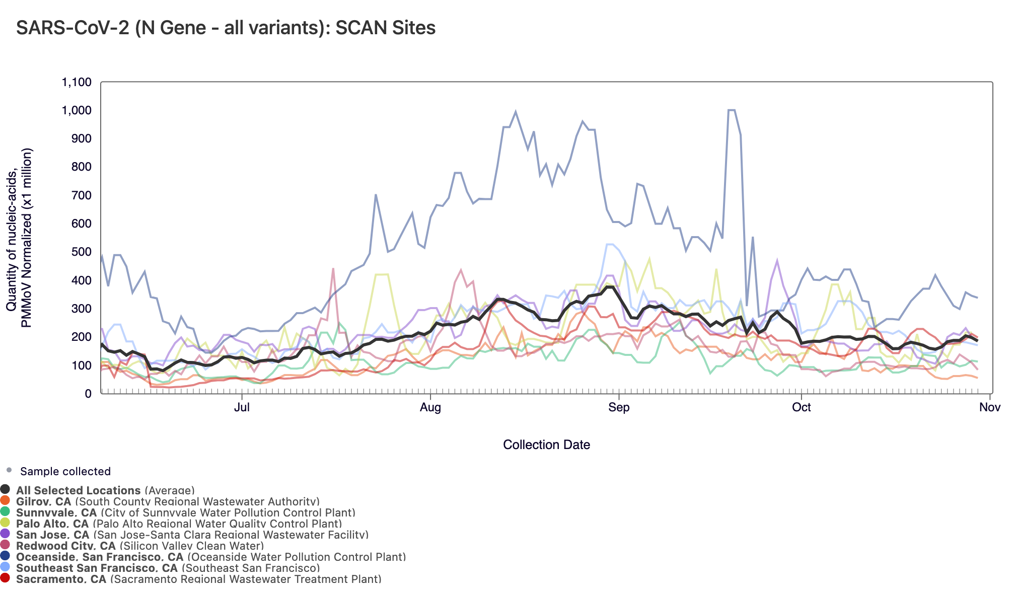 This blog post describes data collected at 8 wastewater treatment plants in the Greater Bay Area of San Francisco, CA, including Sacramento, that are partners in the SCAN project which began in late 2020. The SCAN plants are a subset of the WastewaterSCAN plants.