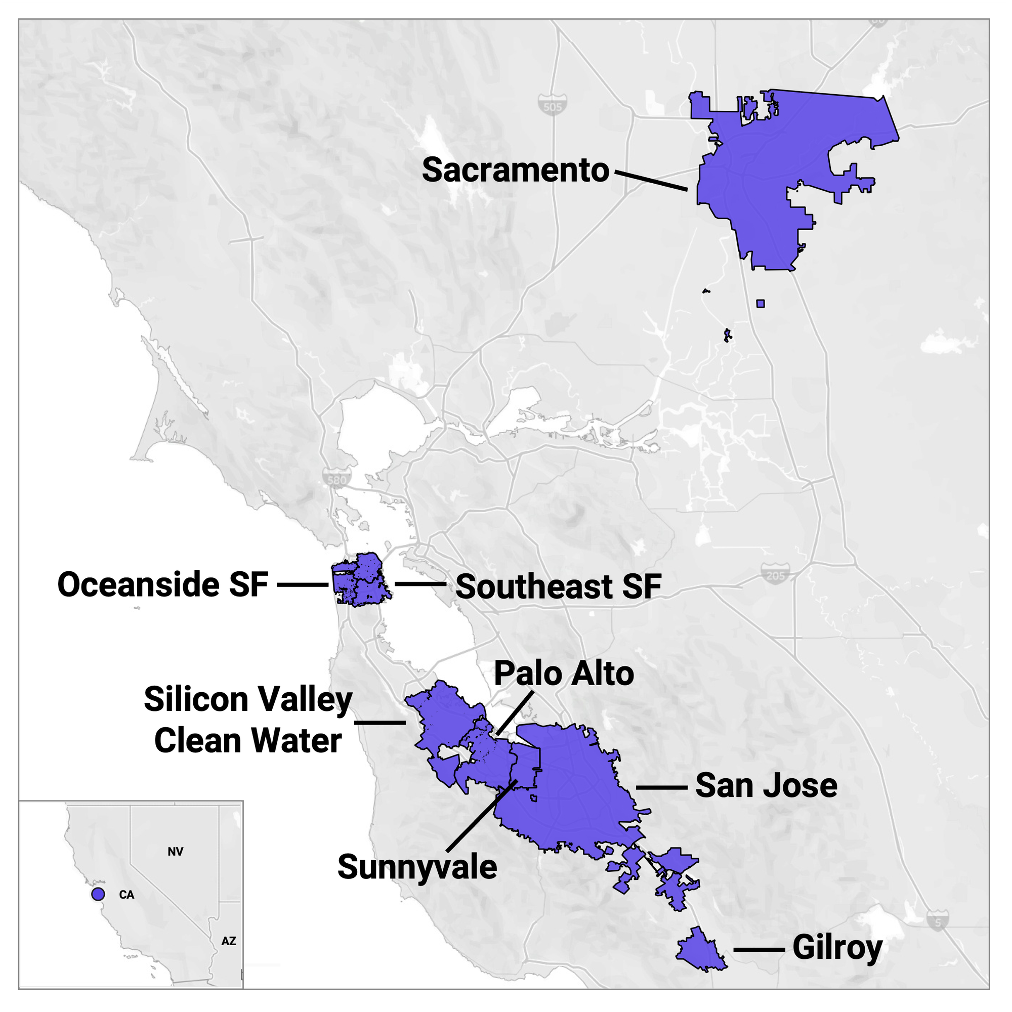 - Gilroy, Palo Alto, Oceanside SF, Sacramento, San Jose, Southeast Sunnyvale, and SVCW are in the LOW Wastewater Category due to no longer being in in seasonal onset